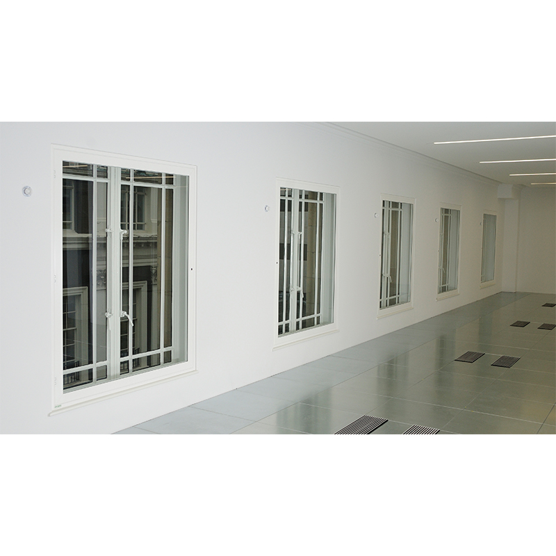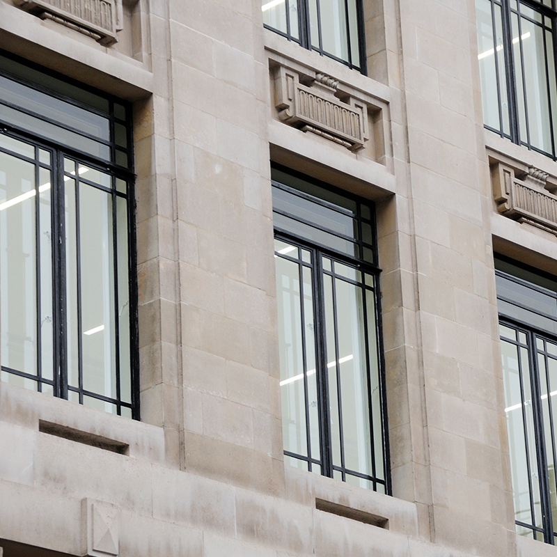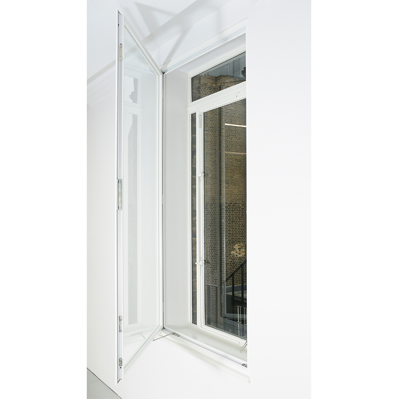 The minimal frames with flush hinges and locks provide clean lines which complement the existing windows and the new interiors. An additional benefit of the secondary glazing is an approximate halving of heat loss and near elimination of draughts that ensures a more comfortable working environment.